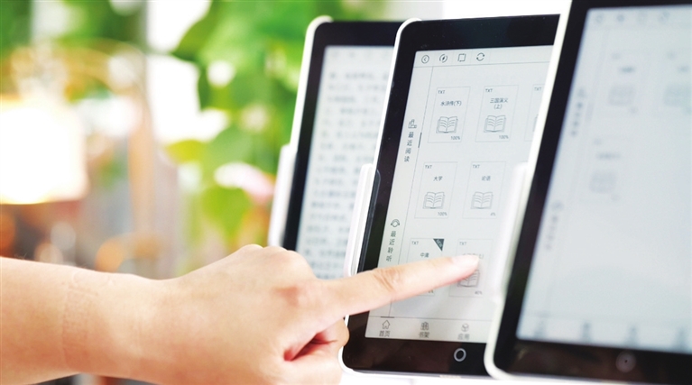 赵康和张宇轩是一对好闺蜜,每有空闲,两人便相约来此阅读、小憩。“这里设备挺先进的,我有时候看电子书,里面有不少古典名著,就这么窝在沙发上,很舒服,也很放松。”