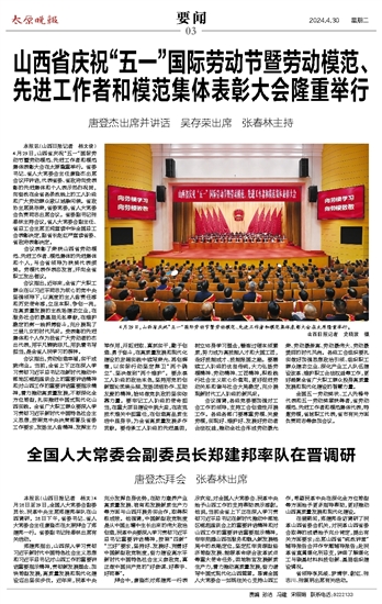 山西省庆祝“五一”国际劳动节暨劳动模范、先进工作者和模范集体表彰大会隆重举行