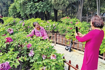 近日,晋祠公园里竞相开放的牡丹花,吸引了众多游客纷纷驻足拍照留影。 李晓琳 摄