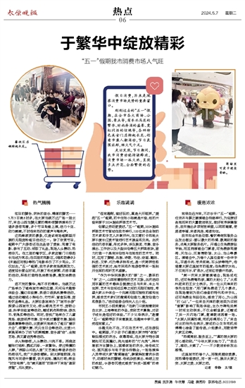 刚刚过去的“五一”假期,在全市各大商场、公园、景点等,有车水马龙的繁华、时尚奔涌的盛景、霓虹闪烁的惊艳等,各种特色美食门店排起长龙、创意市集人潮涌动,节日氛围浓郁,烟火气十足。