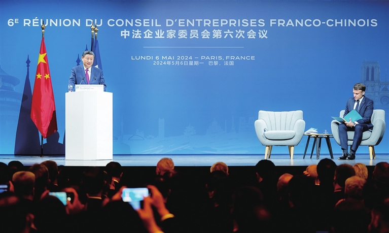 习近平强调,当前,中国正以高水平开放促进深层次改革、推动高质量发展,加快发展新质生产力。我们正在谋划和实施进一步全面深化改革重大举措,稳步扩大制度型开放,进一步扩大市场准入,缩减外商投资准入负面清单,这将为包括法国在内的世界各国提供更广阔的市场空间,带来更多合作共赢的机遇。欢迎法国企业积极参与中国式现代化进程,分享中国发展的机遇。