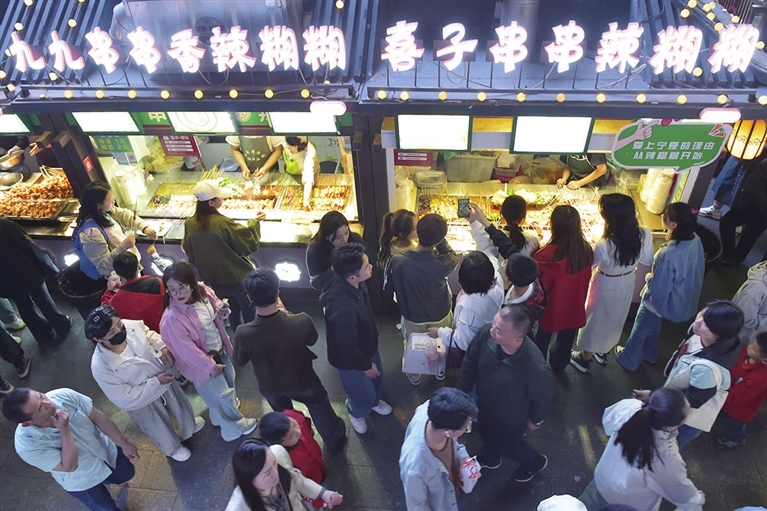 “这个假期,店里每天都很忙,等位能从上午11点排到凌晨,日均客流量较去年提升约15%。”胡大饭馆总经理郭冬介绍说,各门店延长营业时间、加派人手,食材也按照比平日增加约50%的量进行储备。
