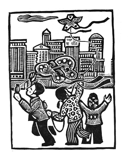 到处都是风筝,连梦里都是。风筝多到了让人心乱。解开缠绕的风筝线,是十分考验人耐心的事情,我的解决办法是,用剪刀把乱糟糟的线团剪断、扔掉,把剩余的直线,再次用死扣接好。唯一一次曾成功地把结了无数疙瘩的线团理出来,心情尤其好,后来没有这样的心情了,也和没心思再去处理如此纷乱的麻烦事有关。让所有的风筝都飞走吧,让所有的麻烦也都飞走,梦里有天空的话,只希望那里剩下一只风筝,悠闲地飞,不比高,不比快,远走高飞或者陨落在地,都可以,看命。