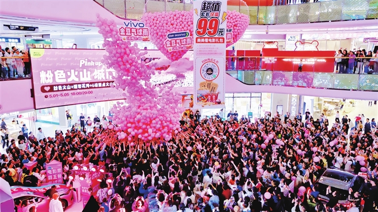 假期内,万达广场、泰享里等大型商超人头攒动、热闹非凡。各种商店和美食餐厅内,消费者络绎不绝,尽情享受购物乐趣,商家联合开展了形式多样的促消费活动,吸引了大量消费者前来选购商品、品尝美食。万达开展“无限宠粉假日”系列活动,泰享里开展“萌派ZAO趣节”系列活动,富力开展“潮玩五悦 无限热爱”活动。