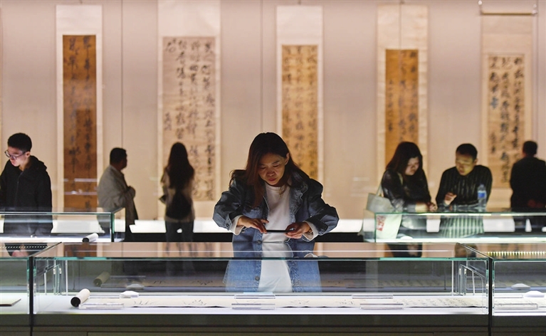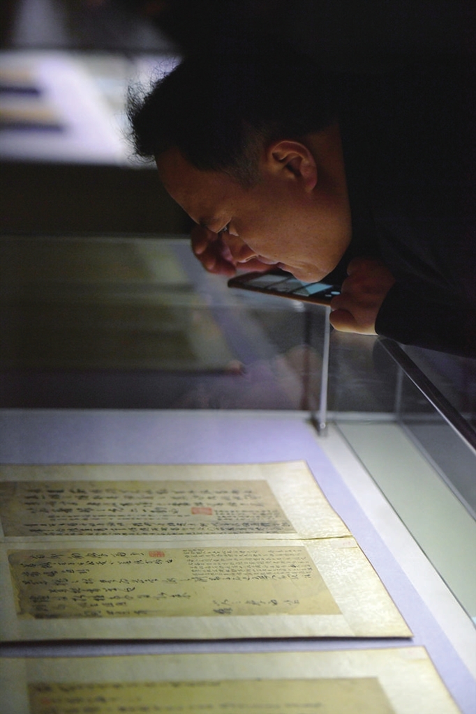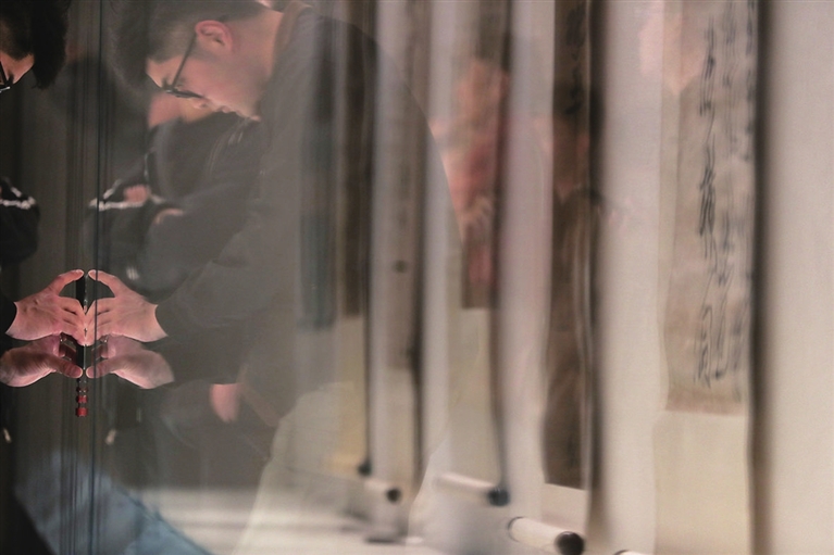 “真山正源——傅山书法艺术展”在山西青铜博物馆展出。“这就是傅山的隶书,清劲刚健。咱们早上吃的‘头脑’,也是他发明的。”一位家长向孩子讲述书法知识的同时,顺便提起了太原的特色美食。另一位观众似乎是个“行家”,伸出手指在展柜的玻璃上游走比画,试图感悟傅山书法的形意之美。该展将持续至5月26日。