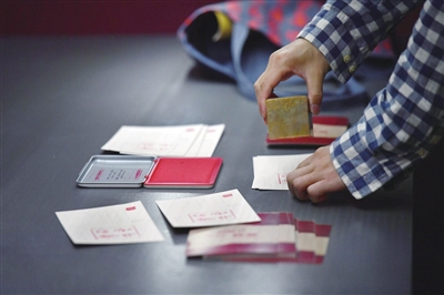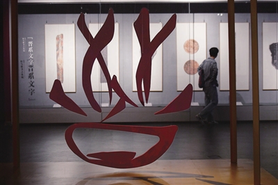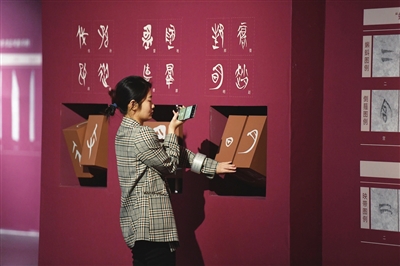 太原美术馆的展品历史更为悠久,“盟书墨源——侯马盟书文字艺术展”于此登场。春秋末期的“侯马盟书”陈列展柜内,展示着那段历史时期的干戈与玉帛。观众里不乏慕名而来的历史爱好者,可无一例外,所有人都被盟书上的文字之美深深吸引。展厅门口摆放了一张长桌,摆好笔墨纸砚,让许多书法爱好者忍不住题上一笔。该展将持续至5月16日。