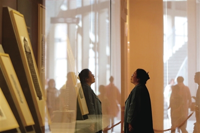 太原市博物馆与山西青铜博物馆毗邻,“魏碑溯源——平城时期魏碑书法艺术展”在这里与观众们见面。欣赏完傅山书法,移步太原市博物馆,大小不一的展柜前不时传来各种点评和赞叹:“看这块瓦当,云头纹的设计独特,字体秀丽,真是巧夺天工!”该展将持续至7月31日。