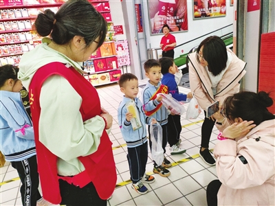 “妈妈经常干活,手上的皮肤都粗糙了,我要给妈妈买一瓶护手霜。”石海栓小朋友说。康桃安小朋友则表示,要给妈妈买最甜的巧克力,让妈妈吃得开心。一个小时后,购物结束,孩子们井然有序地来到柜台结账,满载而归。