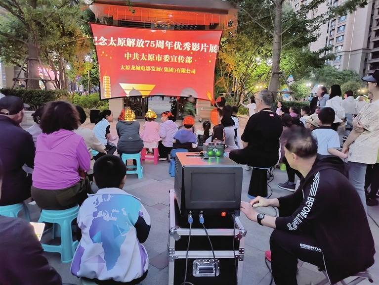 夜幕降临,恒大滨河左岸小区的院子里,临时搭起了“影院”,现场逐渐热闹起来。88岁的朱大爷在儿子、儿媳、孙女的陪同下,特意赶来观影。老人一边看,一边向旁边的孙女说:“孩子你看,今天的幸福生活来之不易,太原发生了翻天覆地的变化,你要好好学习,铭记历史,珍惜当下。”