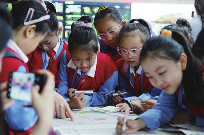 三楼是整个报社的中枢,布满整个墙面的液晶屏幕上一串串跳动的数字显示着新闻的传播量与好评度,让人不禁感叹科技的飞跃与时代的变迁。储物柜上陈列着一张张印有小记者专版的报纸,那是同龄孩子的作品,承载着小记者的梦想与报社工作人员的汗水。我对编辑这个职业不禁多了份敬佩。