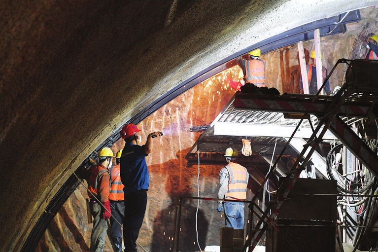 如今,隧道内的“焊花”闪耀着七色光芒,绚烂的电火花映衬着施工人员忙碌的身影。他们迎难而上,用汗水和智慧书写了一曲曲激荡人心的奋斗者之歌。
