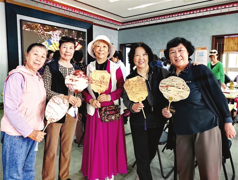 在专业老师的指导下,大家将手中的纸扇沉于调好漆料的水中,一沉一提间,见证“奇迹”,一件件图案迥异、独一无二的艺术品诞生了。