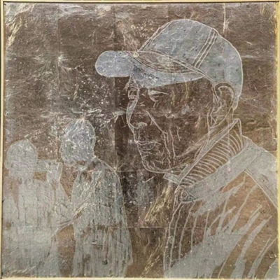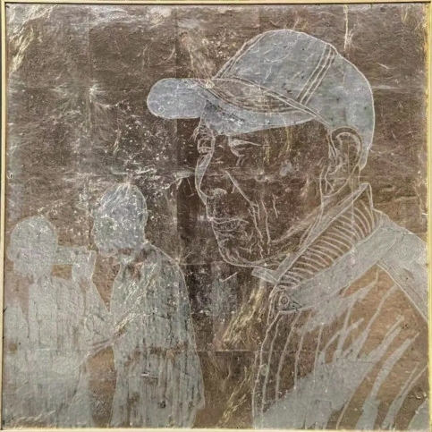 杜政为中国国家画院胡伟工作室画家,他的获奖作品《跨越时空的致敬》的主人公是自己的父亲,一名92岁的抗美援朝老兵。当看到昔日战场上英姿飒爽的父亲,如今已是步履蹒跚的老者,杜政不禁百感交集,于是便用手机记录下来,运用非传统的技法绘制成画,以诠释对父亲的敬意和对那段历史的缅怀。