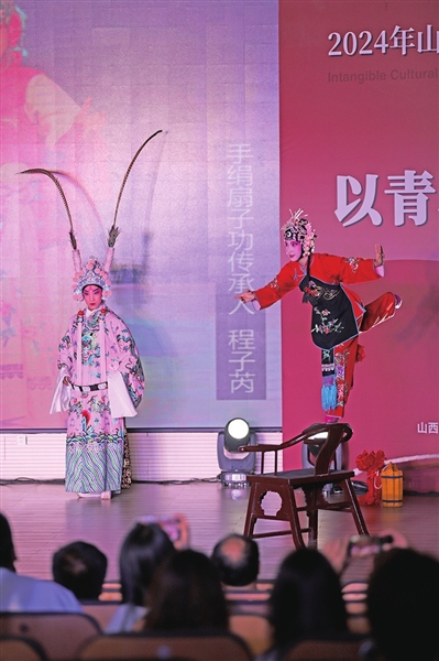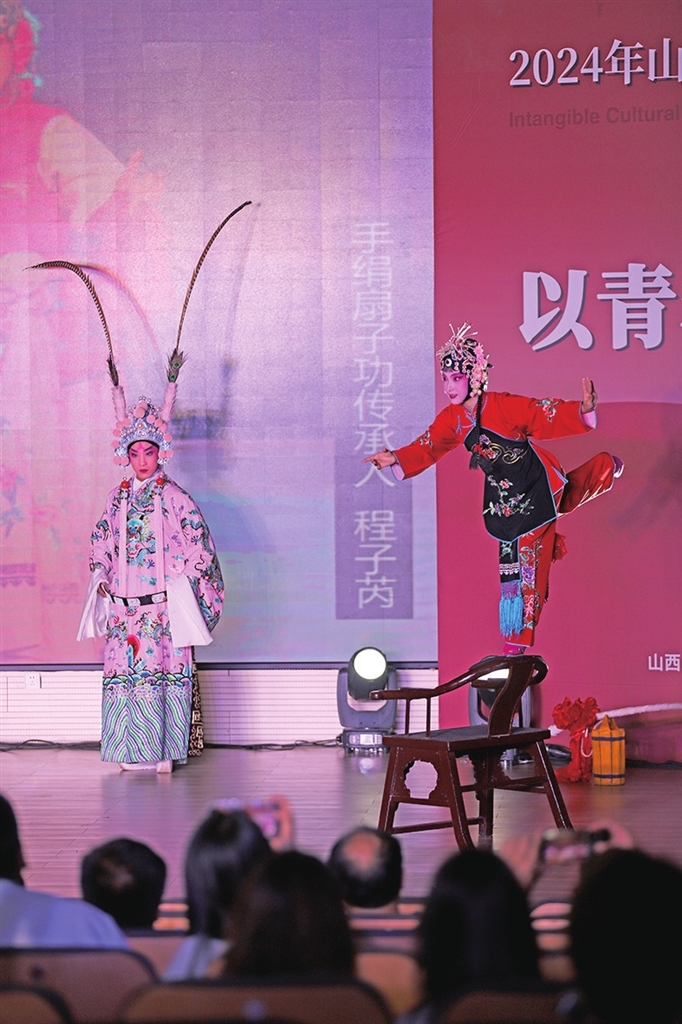 5月16日晚,2024年山西省大学生“非遗正青春”校园演说大赛特色节目展演在山西大学坞城校区举行,42所高校的42支队伍参加。 张昊宇 摄
