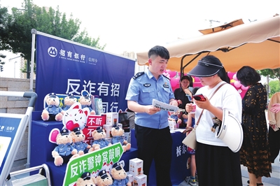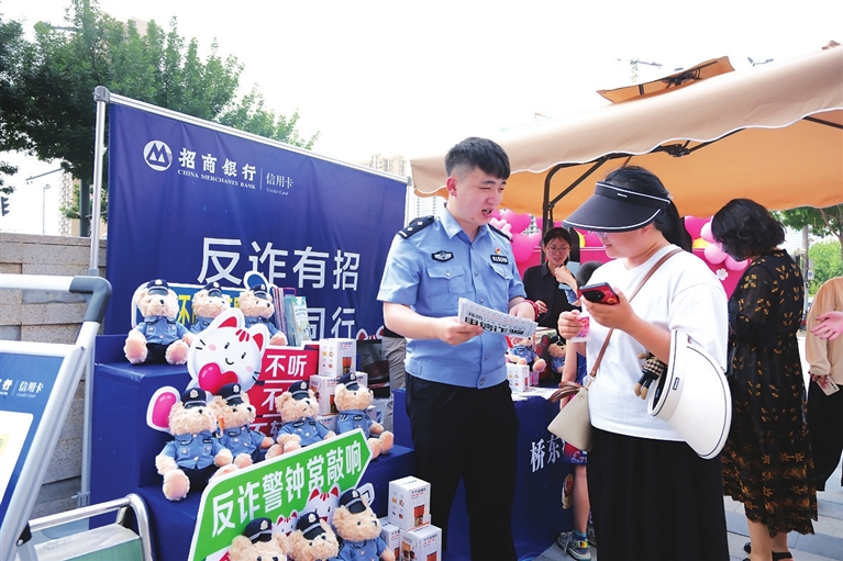 5月18日,公安迎泽分局桥东派出所联合招商银行信用卡中心太原分中心,在辖区开展以“反诈有招 你我同行”为主题的宣传活动,通过讲解典型案例、发放宣传手册等方式,增强市民的安全防范意识。 王韵菲 摄