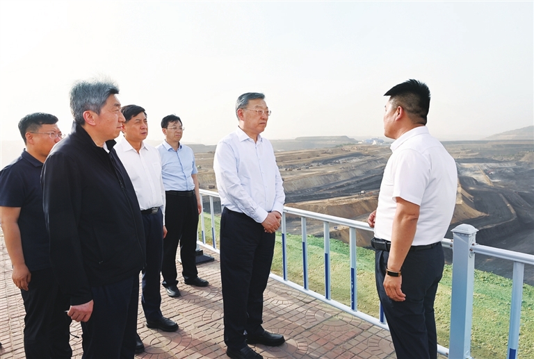 5月19日,省委书记唐登杰在河曲旧县露天煤矿调研煤炭生产储运过程中污染防治工作。 史晓波 摄
