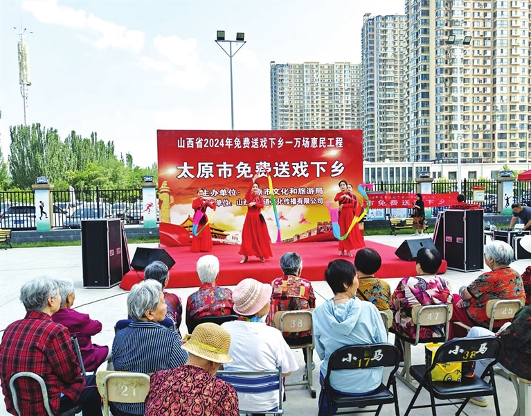 5月22日一大早,居民们三五成群闻讯而来。在铿锵有力的锣鼓声中,演出正式拉开帷幕。晋剧《日月图》选段、歌曲《大中国》、舞蹈及魔术等精彩节目轮番上演。演出中,演员们以扎实的演唱功底和娴熟的表演技巧,富有地方特色的传统唱腔,赢得了观众们的喜爱。台上台下气氛热烈,现场不时传来阵阵掌声和喝彩声。居民李大爷高兴地说:“让我们这些行动不便的老年人,在家门口就能看到精彩演出,这活动办得好。”