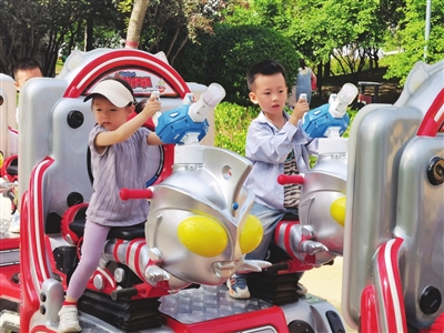 “妈妈,这里的小火车很好玩,小朋友也多,下周咱们还来这儿吧。”和妈妈一起逛公园的孙藤藤小朋友对小火车恋恋不舍。