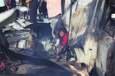 5月27日,人们在加沙地带南部城市拉法查看以军轰炸后的难民营废墟。