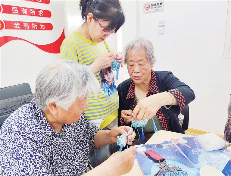 端午节习俗中,除了有粽子的鲜美、艾草的清香,还有来自香囊的淡雅芬芳。活动中,志愿者老师介绍了端午节制作香囊的来历,让大家在活动前先了解端午节的民俗文化。随后,开始分发制作香囊所需的布片、小珠子、挂绳、丝线、流苏、艾草等材料。大家跟着志愿者老师穿针、引线、装中草药、缝合,有条不紊地进行香囊制作。不一会儿,可爱精致的小香囊就做好了。居民张益兰看着自己制作的香囊开心地说:“香囊里放了中草药,既提神醒脑,又驱虫灭菌,真是又好看又实用。”活动结束时,居民们高高兴兴地与自己制作的香囊合影,在拉近彼此距离的同时,感受着浓浓的节日氛围。