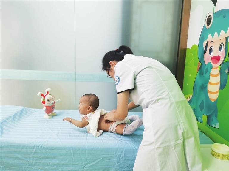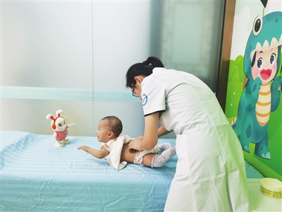 目前,小儿推拿中心可以开展鼻炎、腺样体肥大、小儿肌性斜颈、生长发育迟缓、小儿多动抽动症、假性近视、肠系膜淋巴结炎等疾病的治疗。同时,可以完成小儿脾胃调理、小儿体质调理、儿童眼健康管理、小儿二十四节气保健管理等,并开展小儿药浴、足浴、穴位贴敷、脐灸、拔罐、刮痧等外治疗法。