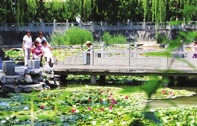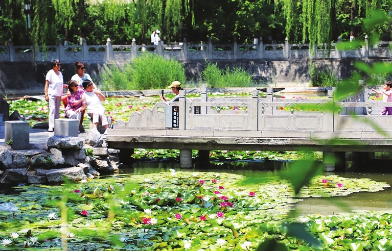 6月3日,文瀛公园文瀛湖千余株睡莲迎来盛放期,吸引众多游人观赏。 张昊宇 摄
