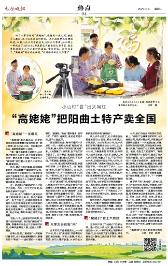 至于下一步的打算,“高姥姥”认为,可以进一步扩大网络影响力和销售力,依托现有的基础,更多地把乡亲们聚拢在一起,做更多更好的事情,改变大家的生产方式,改善大家的生活水平。