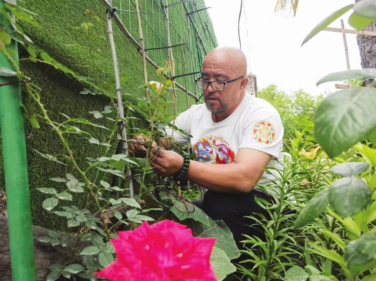 谈及自家小花园,他呵呵一笑说:“我妈爱花,我学了焊工手艺后,这几年就发挥自己的特长,用捡来的边角料改造自家院子。种这么多花,就是让家人能天天见鲜花、时时闻香味!”