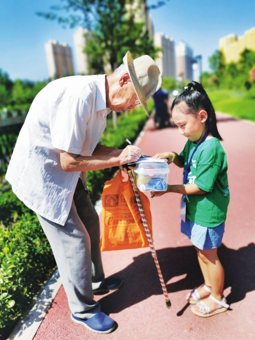 张晶的两个孩子先后成为环保小卫士,10岁的大女儿刘子萌连续5年被聘为民间小河长。6岁的小女儿刘妍初在幼儿园,是班上小朋友眼中的“环保达人”。每到休息日,她们一家还会出去捡拾垃圾,向路人宣传节水知识。“不随意丢弃垃圾,不向河中倾倒生活用水,每个人都力所能及。”张晶说。