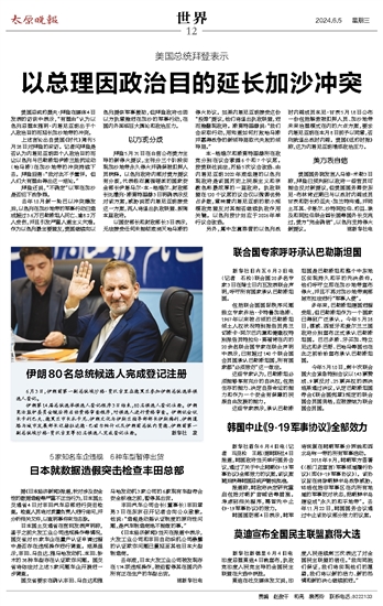 以总理因政治目的延长加沙冲突