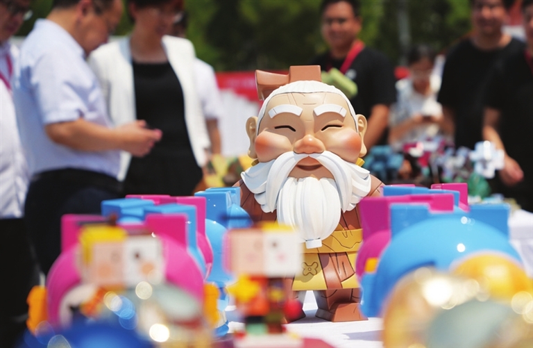 首届鲁班文创设计大赛优秀作品展在山东省滕州市开幕。比赛共收到20多个国家和地区的参赛作品2200余件。图为6月11日在首届鲁班文创设计大赛优秀作品展上拍摄的文创设计作品。 新华社 发