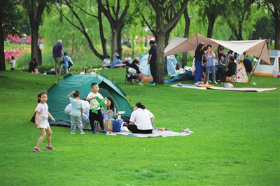 人民城市人民建,人民城市为人民。露营并不一定非要驱车百里、跋山涉水,家门口的公园也可以成为“诗和远方”。市园林部门科学制定了开放绿地轮换规则,增加座椅、垃圾桶、柔性提示牌等基础设施,各公园既允许游客自带帐篷、桌椅,也提供租赁服务,他们还根据市民使用绿地需求确定精细化管护工作方案,积极探索共享绿地新模式,打造更多景观更精美、服务更贴心、功能更丰富的园林应用精品场景,让大家尽情享受这份融入大自然的惬意。