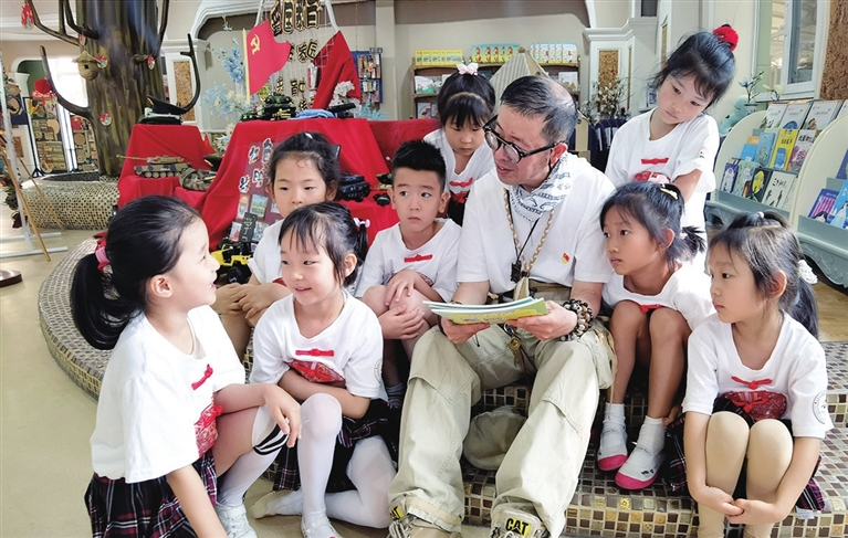 6月17日上午,太原市专家协会向兴华礼仪幼儿园、沃德兰·东大幼儿园及清徐县清源幼儿园的孩子们赠送了120套《安徒生童话故事游戏训练》。该书由市专家协会专家、太原市青少年宫美术老师崔治民编绘而成,具有手眼脑协调训练功能。图为崔治民为孩子们讲解如何“玩转”这本书。 姚宏 摄
