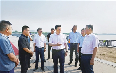 韦韬首先来到汾河东暗涵入口,察看入汾口水量水质情况,询问实时监测数据,要求加大沿河执法检查力度,坚决查处污水偷排直排乱排行为。随后,韦韬走上2号泄洪坝,详细了解防洪标准、汛期应对举措,要求坚决落实习近平总书记对防汛抗旱工作作出的重要指示精神,强化风险意识,做好应急准备,确保安全度汛。在综改区一处项目工地,韦韬实地检查裸土苫盖、湿法作业、车辆喷淋、工地围挡等措施落实情况,要求企业严格落实“六个百分百”措施,全面强化施工现场管理,严防扬尘污染。在山西大昌轿车维修服务中心,韦韬现场察看汽车维修喷漆设施运行情况,通过专业检测设备观察污染物数值变化,要求企业配齐环保设施设备,改进升级工艺技术,有效降低污染物排放。在太原市生态环境监测中心,韦韬结合大屏听取全市大气环境改善和水污染防治工作汇报,询问污染成因、污染源整治等情况,要求充分发挥平台数据分析、监测、调度等作用,以科技赋能助力生态环境改善。