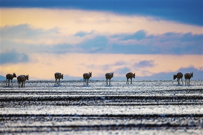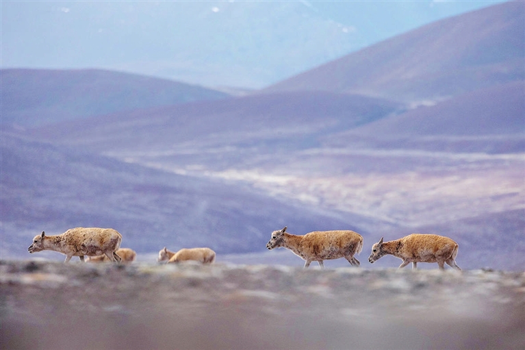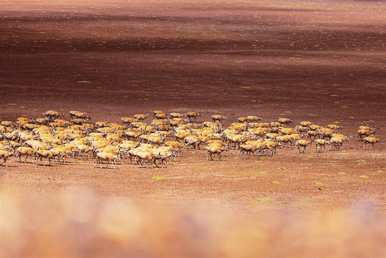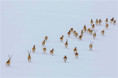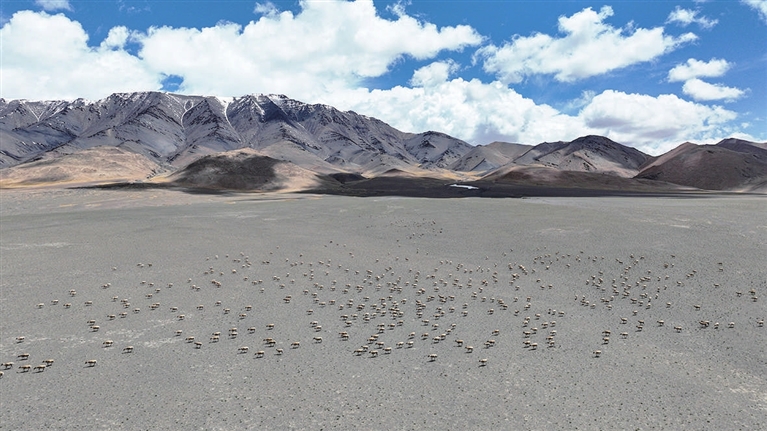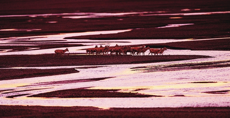 每年5月至7月,藏北羌塘国家级自然保护区内的母藏羚羊进入迁徙繁殖季。作为藏羚羊迁徙的主要线路之一,数万只母羊向着羌塘保护区深处玛尔盖茶卡附近和玉龙河畔的产羔地迁徙,于此生下小羊羔后再回迁。