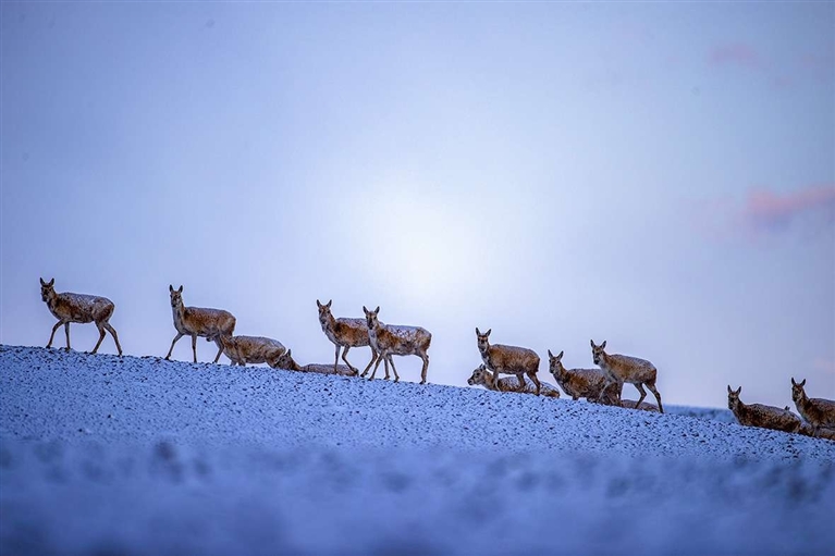 从5月开始,新华社记者进入羌塘国家级自然保护区跟踪拍摄藏羚羊的迁徙之旅;6月12日到15日,记者跟随野生动物专业管护队员,深入羌塘保护区核心区,在海拔5400米左右的甜水河畔安营扎寨四天三夜,在藏羚羊迁徙的必经之路上记录这一神奇而壮美的迁徙场景。