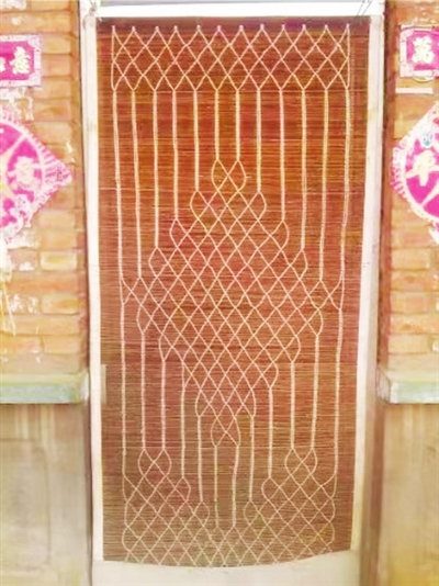 一般人家打帘子,打成简单的直线,省工省力,但一些心灵手巧的农妇会别出心裁地以棉线为经竹篾为纬,编织出许多精巧美观的图案。常见的有龟板纹、波浪纹等,如果是给结婚的新人打帘子,则一定要在中间编上大大的双喜字,让人赏心悦目,给清贫简单的生活添一抹亮丽的色彩。