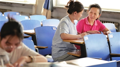 “刚入学的时候,我最担心的是和‘小朋友们’相处不好。”然而,张计玲的担心是多余的,同学们不仅非常喜欢她,而且还很依赖她。三年来,张计玲不仅结交了好朋友,还有一个亲密无间的“背书搭子”,两人在期末考试周互相督促学习。有人说年纪大了之后,记忆力和精力都会下降,学也学不进去。张计玲说:“一次记不住,就记两次,反复记,只要记下来就会有成就感,有成就感心情也变得愉悦,就更加享受学习的乐趣,形成了良性循环。”闺蜜孔德然说:“阿姨热心大方,成绩也不错,她是别人家的妈妈,也是我的闺蜜。”