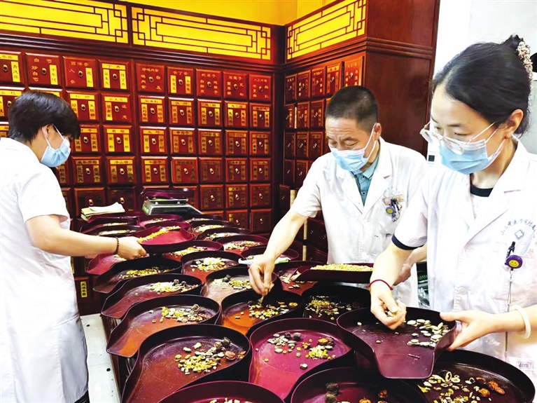 “搭伴买起”“明天去能买到吗”“怎么买急急急”……气温越来越高,咨询的人络绎不绝,现在医院日均开方近2000余剂。面对越来越大的需求量,如何让老百姓的获取渠道更加便捷畅通?国医堂工作人员想了很多办法,他们采用线下结合线上方式,同步畅通流程。在国医堂为来院患者设立了一站式服务,从开方、缴费到取药“流水线”完成,将组方设定为协定处方,在全院门诊均可开方。仅仅一部热线电话已不能满足目前的需求,他们迅速建立了微信群,设计了报名表单,报名表单可通过扫码填写,既保护了购买者隐私,又便于统计。