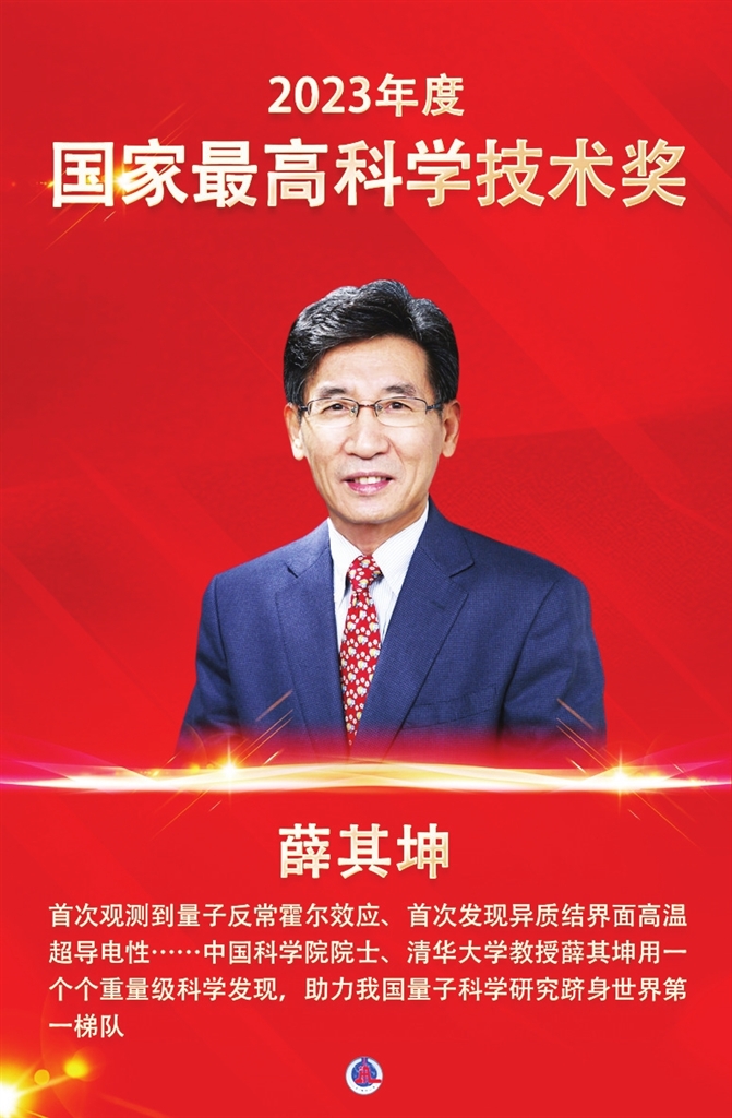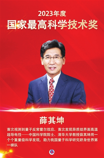 6月24日,中国科学院院士、清华大学教授薛其坤站上了2023年度国家最高科学技术奖的领奖台。