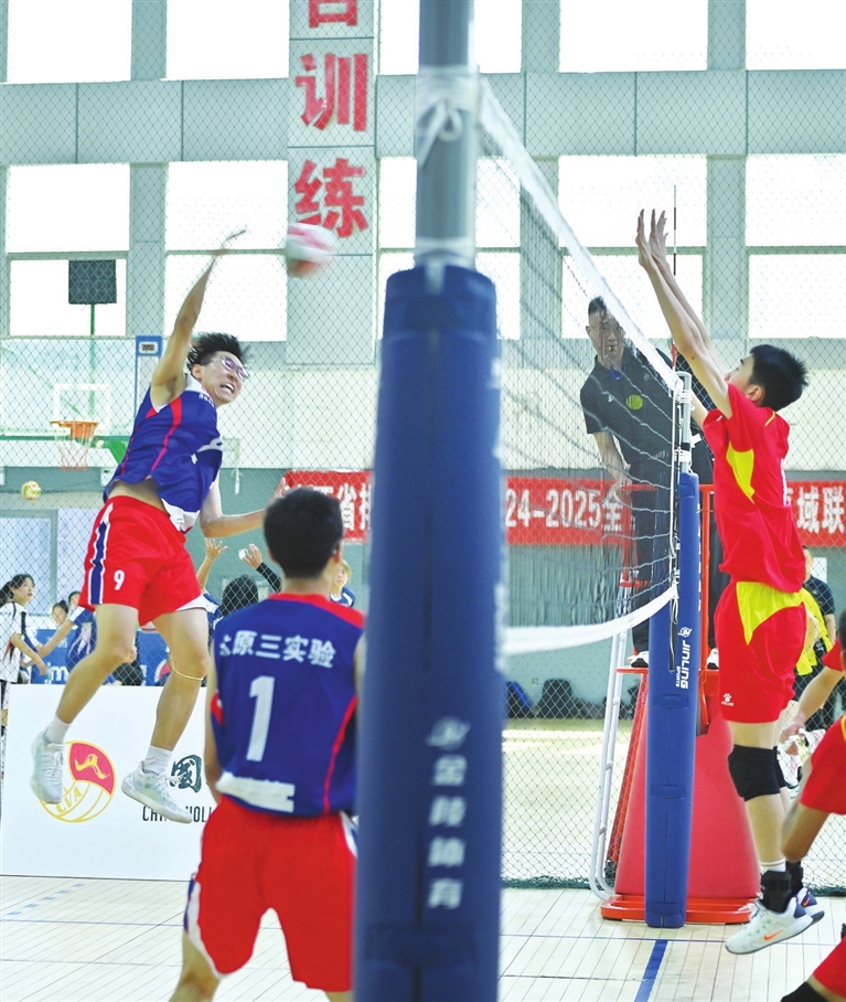 “先努力拿下山西省冠军。”太原十五中男排队员王子懿说,“随后的西北赛区和全国总决赛,我们同样会全力以赴冲击好成绩。”在山西赛区首场比赛中,太原十五中男排直落3局,轻取太原市第三实验中学队。