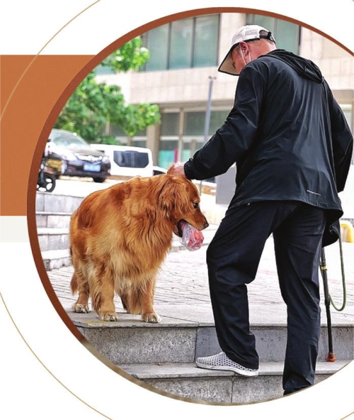 我们的生活不再似从前,“爷爷”只能拄着拐杖慢慢走路,手脚不灵活、口齿不清楚,我总想帮“爷爷”干点什么。看到“爷爷”扔垃圾的时候很费劲,我就试着用嘴把垃圾叼起来扔出去,和“爷爷”买菜的时候,我负责把菜叼回来。有时候“爷爷”需要拿快递,小哥就会把快递放在我的嘴里,慢慢地,我能帮“爷爷”干的活越来越多了。