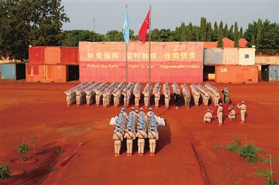 中国第14批赴南苏丹(瓦乌)维和部队组织官兵举行重温入党誓词活动(6月29日摄)。