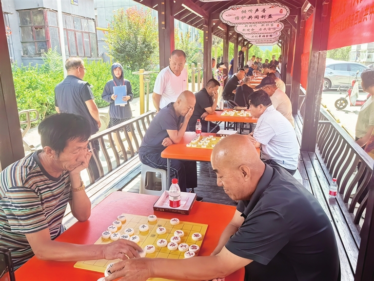 当天上午,比赛现场热闹非凡,选手们早早到来,个个摩拳擦掌、跃跃欲试。他们中有久经沙场的老手,也有初出茅庐的新手,大家有说有笑,气氛热烈。比赛过程中,棋手们各显神通,在小小棋盘上斗智斗勇,认真琢磨着每步棋的走法、布局、进攻与防守。有人轻轻拿着棋子在手指间旋转,眉头微蹙,有人双手紧握在一起,努力思索……一旁观战的居民认真观察,有的热心提建议,有的眉飞色舞相互讨论着。