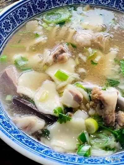 牺汤里的羊肉是块状的,且量大,肉质鲜美,汤色浓白,加入少量羊血和揪片以及大葱、香菜,香味诱人。馏米是小店等地的传统美食,常在赶集、庙会时用来待客、婚丧嫁娶时作为早餐,也是端午节、腊八节的核心美食。
