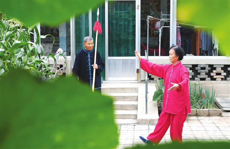 80岁的刘三妮正在练习太极拳。牛利敏 摄