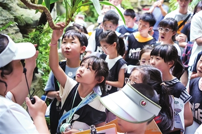 逛累了、看够了,孩子们还可以在时光电梯旁“安营扎寨”,体验一把“植物园奇妙夜”。孩子们一边三五成群地配合着搭帐篷、布置露营场地,锻炼动手能力、协调能力,一边惊奇地发现,原来植物园的夜晚是属于鸟儿、青蛙、萤火虫的,各种声音此起彼伏,是“真正美妙的音乐”。