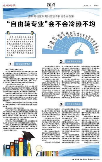 “全国多所高校放宽转专业限制,反映出对学生个性化发展和教育灵活性的重视。”吴丹说,包括北京大学在内的很多高校都在探索更加灵活的转专业政策。这也是对当前社会人才需求多样化的响应,有利于培养更多具有创新精神和实践能力的人才。