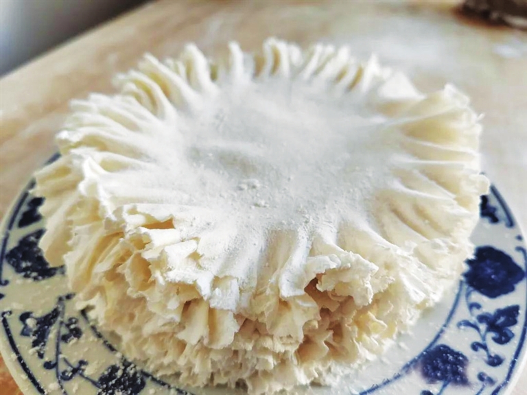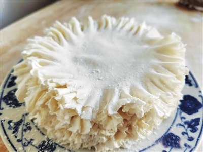 撴好的稍梅皮薄如纸,圆如盘,边花多,挑成的稍梅馅大、香醇、利口,放在笼里,犹如朵朵雪梅。“奴家身材小,爱穿白衣裙。如同稍枝梅,体态最轻盈。”这首小诗形象地描述了稍梅的特征以及太原人对其的喜爱。