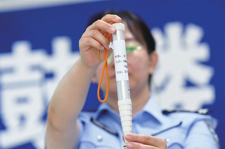 鼓楼派出所民警在一些老人的随身物品上贴写“防走丢信息”。 邓寅明 摄
